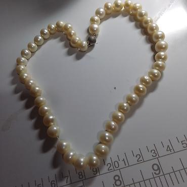 - Нити из круглых/слегка овальных жемчужин кремово-белого оттенка с красивым перламутровым блеском.