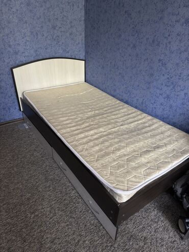 Односпальная кровать с матрасом и выдвижными ящиками.