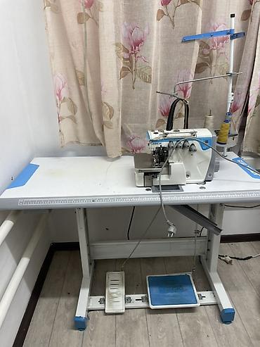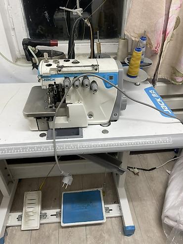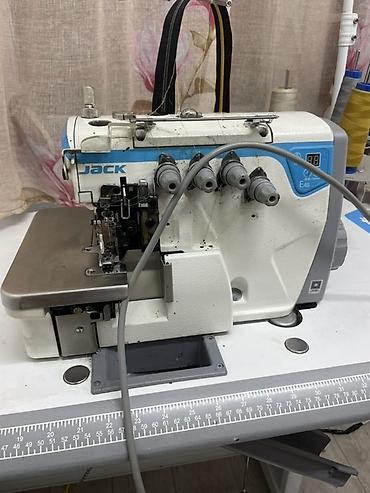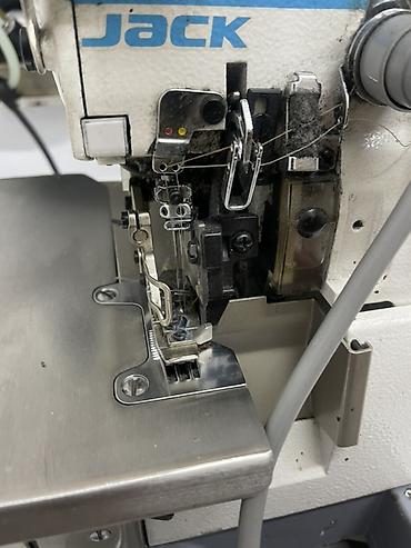- Профессиональная 3/4‑ниточная оверлочная машина JACK с выносным столом и стойкой для нитей.
