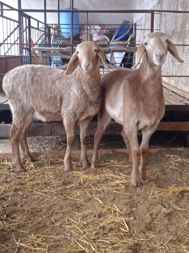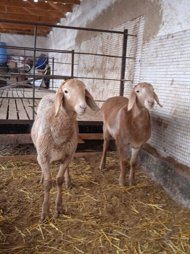 Ягнята мясного направления. - Молодые ягнята от маток с хорошими материнскими качествами. - Окрас: один рыжий (однотонный), второй белый с коричневыми отметинами и мордой. - Длинноухие, крепкая ко...
