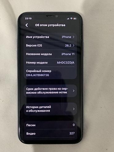 IPhone 11, 64 ГБ, белый Характеристики и детали с экрана: - Модель: iPhone 11 (Model No. MWLD2LL/A) - Память: 64 ГБ (доступно около 49,73 ГБ) - iOS: 18.6.2 - Серийный номер виден на фото экрана “О...