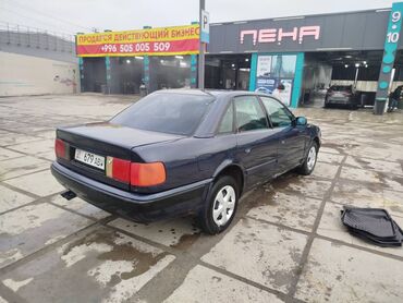 Audi 100 C4 седан, темно-синий цвет. Бензиновый V6 под капотом (см. фото), передний привод. Кузов классической формы, 4 двери, спойлер на крышке багажника. Легкосплавные диски, шины дорожного профиля. Черная решетка радиатора с эмблемой Audi, бамперы и молдинги в цвете темного пластика. Оптика с прямоугольными фарами, крупные задние фонари. Зеркала и ручки дверей в цвет кузова, тонировка задней полусферы. Просторный багажник, комплект резиновых ковриков в наличии (на фото). Номерные знаки KG. Отличается надежной механикой, комфортной подвеской и большим салоном — классическая немецкая «сотка» на V6.