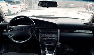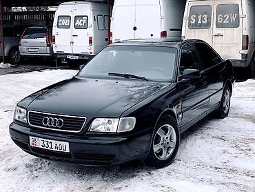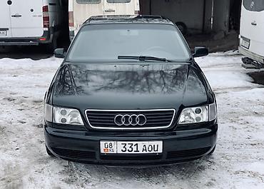 Пушка тяга на всё 250л.с.на зимней резине газ-бензин (пропан)Audi A6 C4, седан, чёрный цвет. Бензиновый V6 2.6 (обозначение 2.6 на крышке багажника), передний привод. Кузов с классическим дизайном: хромированная окантовка решётки, двойной выхлоп, тонированные стёкла. Оптика — прямоугольные фары с линзами, противотуманные огни интегрированы в передний бампер. Легкосплавные диски, зимняя шина на фото.