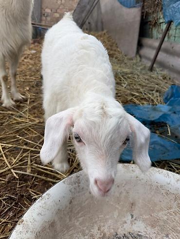 Козлёнок белой масти - Порода: домашняя козья, белая масть. - Пол: козлик (по внешним признакам на фото). - Окрас: однотонный белый, светлая мордочка и уши. - Уши полудлинные, опущенные. - Возраст...
