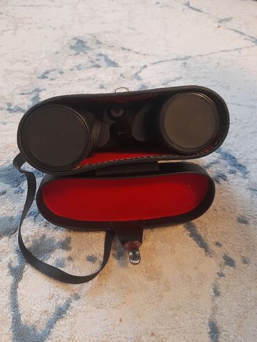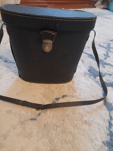 - Жесткий кожаный кофр/чехол на ремне, с внутренней отделкой красным материалом