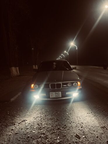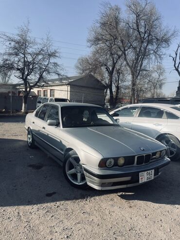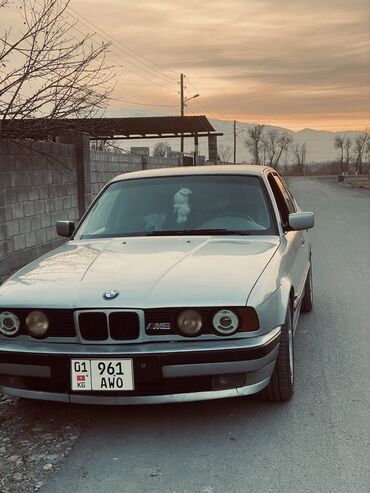BMW 5 Series (E34) седан, серебристый цвет кузова. Номерные знаки KG 01 961 AWO.