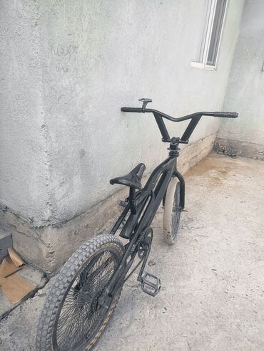 BMX-велосипед для трюков и катания по городу. Особенности: - Стальная рама BMX с усиленной верхней трубой. - Колеса примерно 20" с широкими покрышками полуслик/грунт и частыми спицами. - Односкоро...