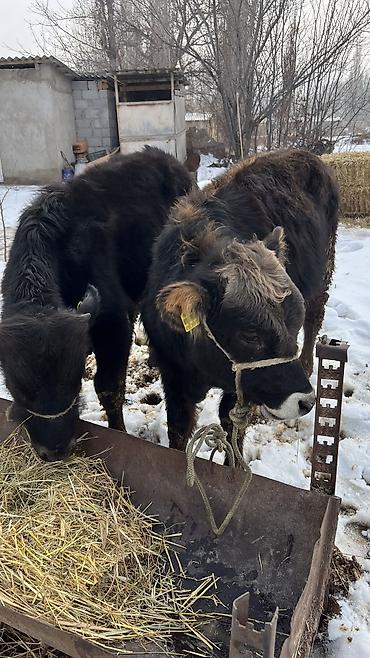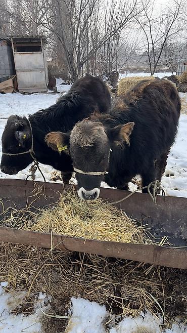 Коровa с телёнком (новотёл) - Порода: помесная молочная, масть пёстрая (буро-белая). - Новотёл: телёнок только что получен на фото. - У коровы развитое вымя с ровными долями и хорошо выраженными с...