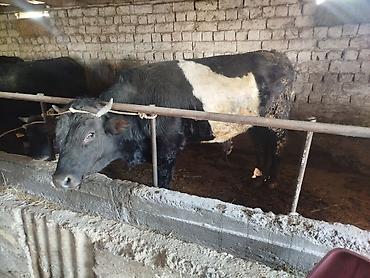 Быки 15голов цена договорная мясного направления с характерной чёрно-белой мастью (широкий белый «пояс» на туловище). Содержится в стойле, рога короткие, крепкие. Телосложение развитое, длинное туловище, мощная грудь и задняя часть. Подходит для откорма и разведения на мясную продуктивность.