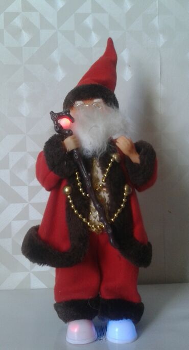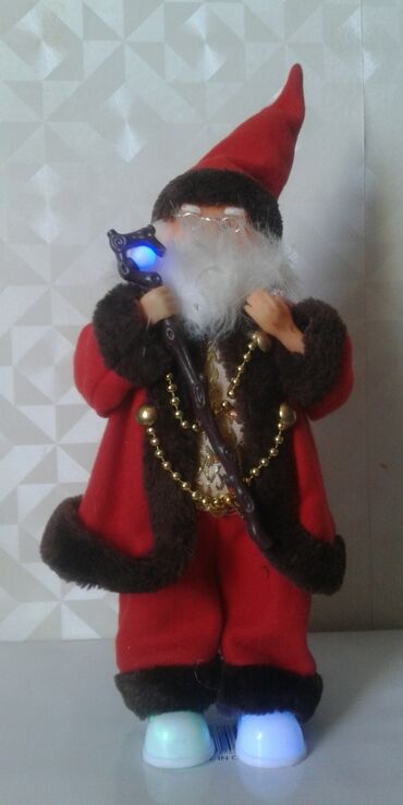 Дед Мороз — фигурка под ёлку. Ноги и тело удлиняются - Размеры: высота 48 см, ширина основания 29 см. - Выполнен в серебристо-сером оформлении: колпак с помпоном, длинная белая борода, куртка с «...