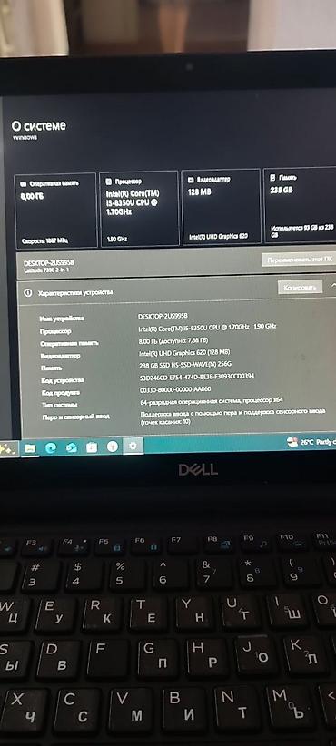 - Процессор: Intel Core i5‑8350U, 1.70–1.90 ГГц.