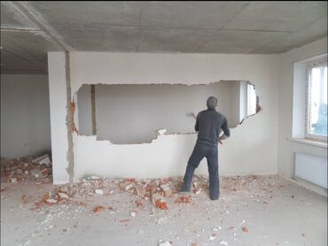 - Разборка кирпичных, пеноблочных и гипсовых перегородок, демонтаж проёмов, расширение и устройство новых проёмов.