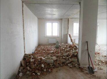 - Акуратный демонтаж штукатурки, плитки, стяжки, плинтусов, подоконных зон.