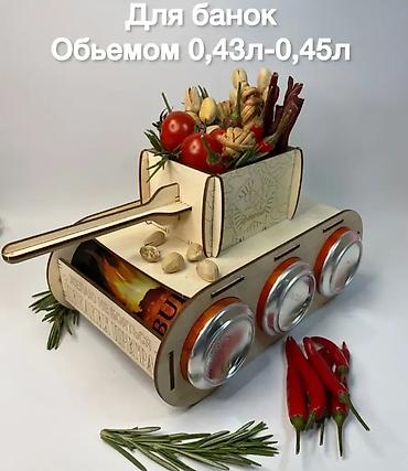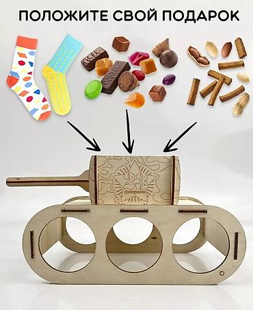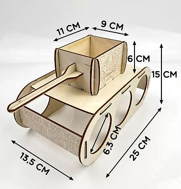 Деревянный подарочный держатель в форме танка для банок и угощений. -