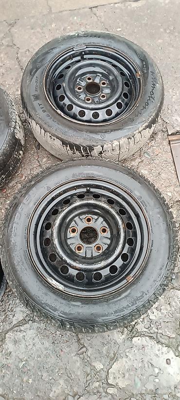 Видны следы эксплуатации: местами ржавчина на посадочных отверстиях и ободах, загрязнение боковин шин. Резина разных производителей (на фото просматриваются марки Cordiant/Белшина). Хороший вариант как запасной комплект на зиму/дачу или под восстановление/переобувку.