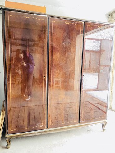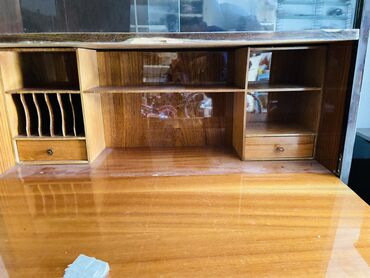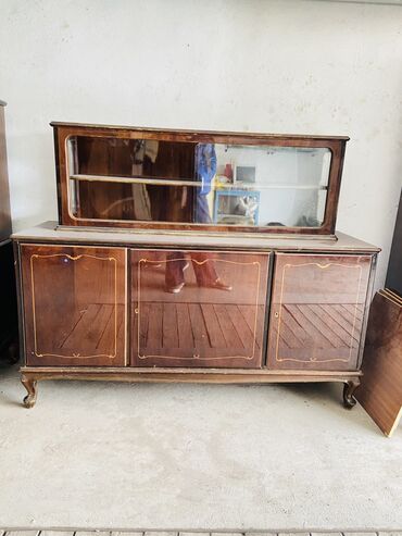 Гостиная стенка/модульный шкаф с витринами и местом под ТВ. В хорошем состоянии. Хочу интерьер поменять. - Компоновка: два высоких шкафа-витрины по бокам, центральный модуль с нишей под телевизор...