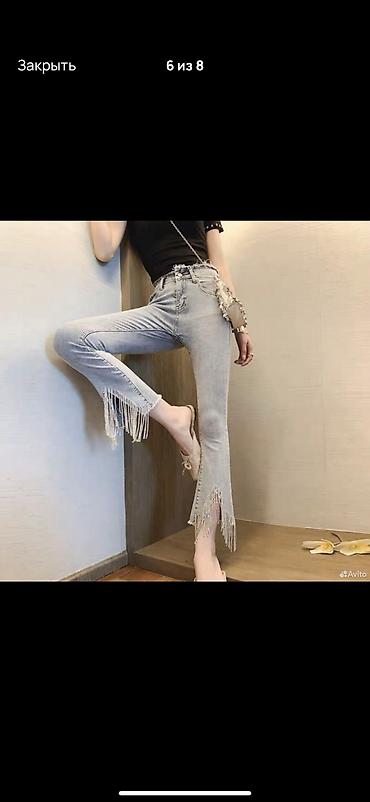 Джинсы, Бэгги, Средняя талия, Со стразами, L