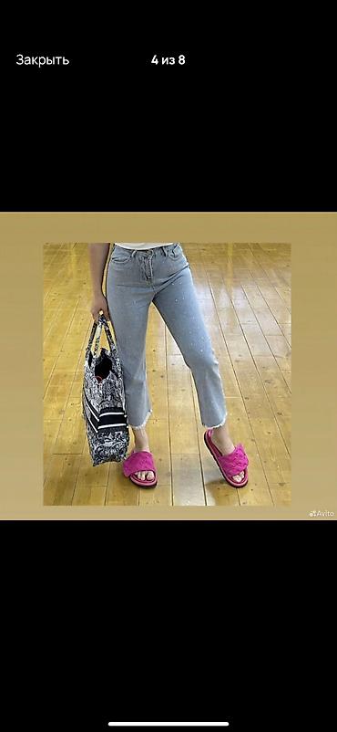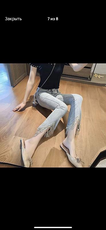 Джинсы, Прямые, Высокая талия, Со стразами, S