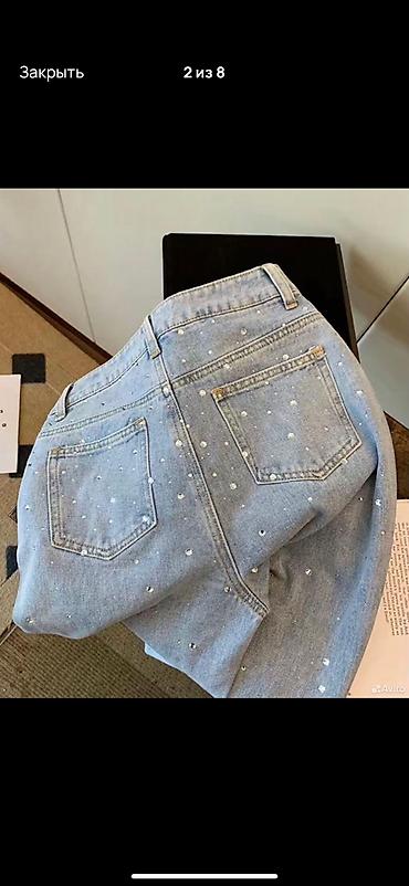 Джинсы, Бэгги, Высокая талия, Со стразами, L