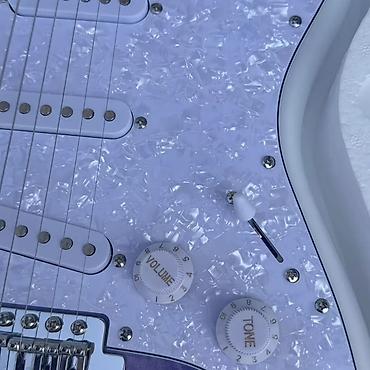 Отлично подходит для стилей: рок, поп, блюз, фанк и инди — классический страт-звук с широким диапазоном тембров. Эстетика: выразительный фиолетовый градиент с перламутровыми элементами и хромированной фурнитурой.