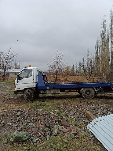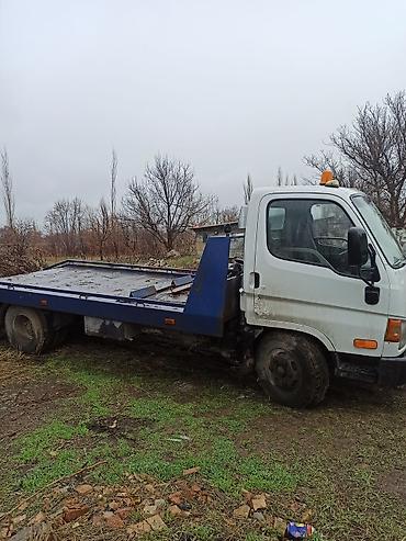 Эвакуатор на базе Hyundai (кабина малотоннажного грузовика) с цельнометаллической платформой.