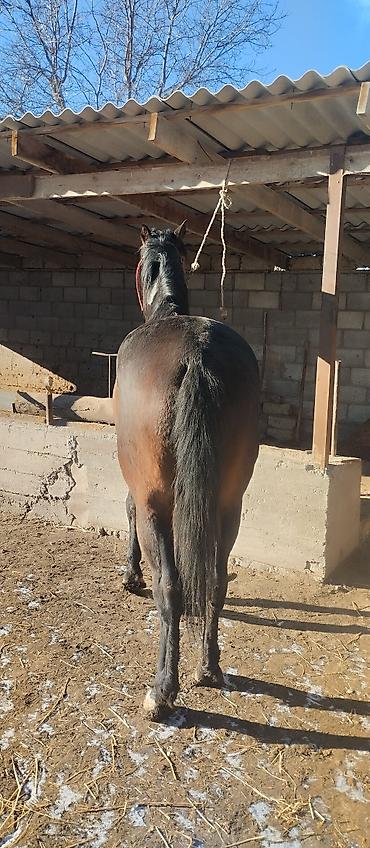 Бышты 3 жаш сатылат улагы баар Лошадь верховая, масть темно-гнедая. Крупная, хорошо сложенная, с выраженной мускулатурой и крепкими ногами. Высокая холка, ровная спина, глубокая грудь. Хвост и гр...