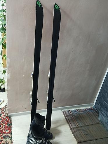 Горнолыжные комплекты (2 набора) Набор 1: - Лыжи Völkl (черно-бело-синие с зелёными элементами) - Крепления интегрированные на платформе - Горнолыжные палки (черные) - Ботинки горнолыжные 4-клипсо...