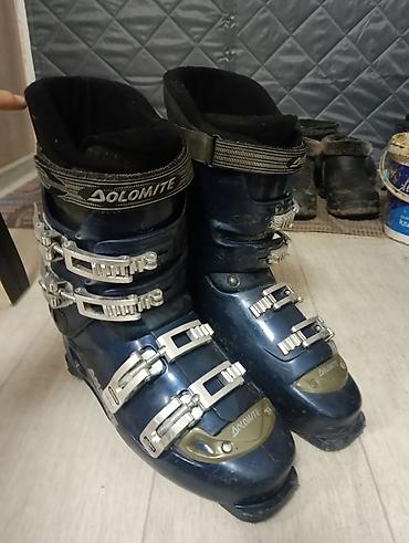 - Горнолыжные ботинки Dolomite 41-42 (размер), с четырьмя металлическими пластиковыми баклями и верхним силовым ремнем. Жесткость средняя, внутренняя часть с утеплением. Размер визуально ближе к мужскому, ориентируйтесь на свою стельку (внешняя подошва стандартная под альпийские крепления).