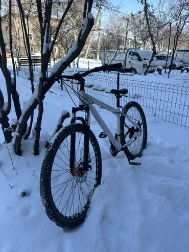 - Колеса: 29", двойные обода, покрышки с выраженным протектором для грунта/снега.