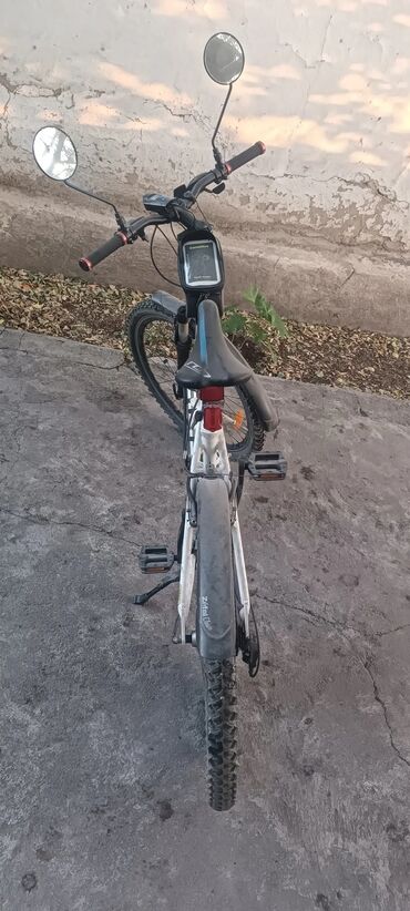 Подойдет для городских поездок и легкого бездорожья; удобен благодаря амортизации, широкой резине и полному комплекту аксессуаров (освещение, крылья, подножка, сумка для телефона и зеркала). Размер рамы ориентировочно M.