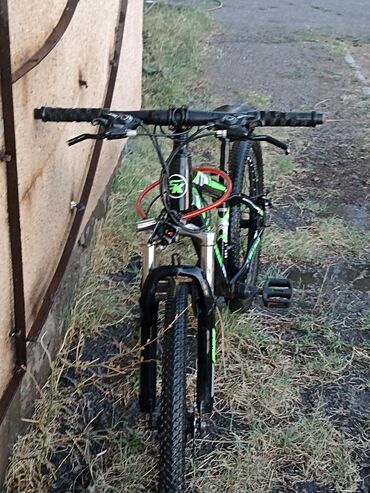 - Седло: спортивное, двухцветное (черно‑зеленое), подседельный штырь с микрорегулировкой.