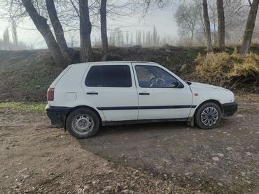 Volkswagen Golf III, пятидверный хэтчбек, белый цвет кузова. - Региональные номера KG (Кыргызстан), задний дворник. - Передний и задний пластиковые бамперы в черном цвете, боковые молдинги. - Зе...