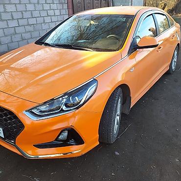 Hyundai (седан), яркий оранжевый цвет, фирменная наклейка HAECHI SEOUL.