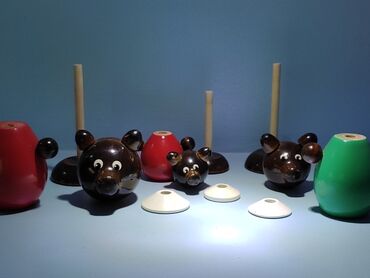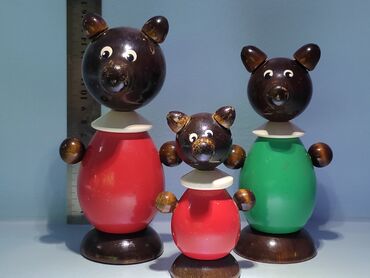 Игрушки 3 медведя. Пирамидки, разборные. Материал - дерево