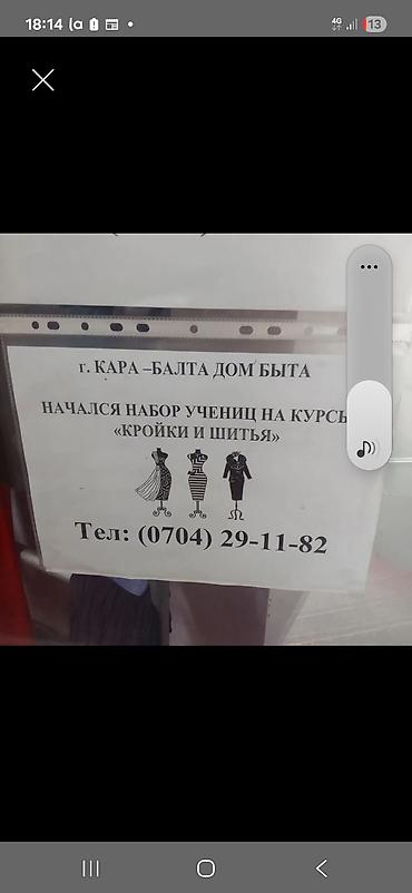 Также проводится набор учениц на курсы «Кройки и шитья» (г. Кара-Балта, Дом быта).