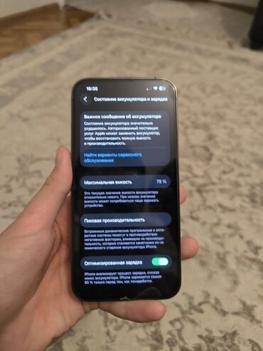 - В разделе «Состояние аккумулятора» отображается максимальная емкость 79% и системное уведомление о необходимости сервисной замены аккумулятора