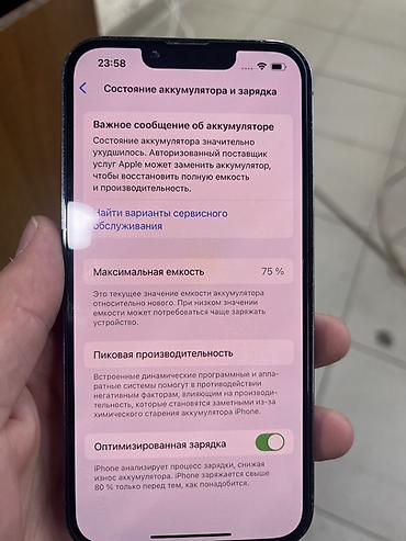 - Аккумулятор: максимальная ёмкость 75% (в разделе «Состояние аккумулятора и зарядка» отображается уведомление о необходимости обслуживания).