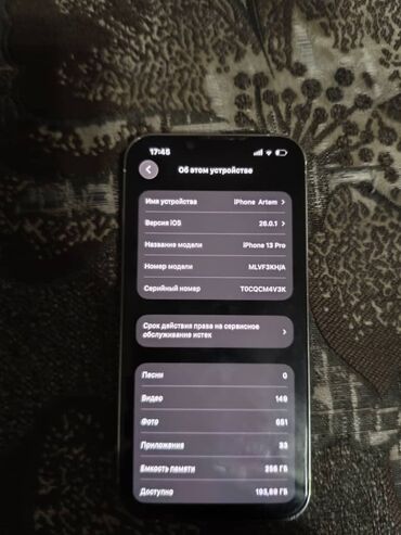 - Память: 256 ГБ (доступно ~193,8 ГБ на момент снимка).