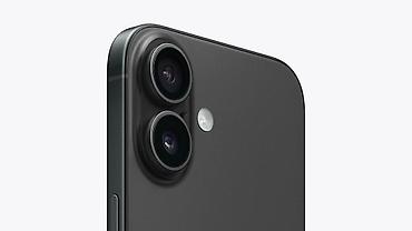 Apple iPhone 16 – компактный и мощный смартфон с фирменным дизайном в графитовом цвете.
