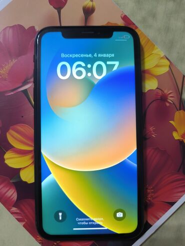 IPhone XR, белый цвет Память 128 ⚜️ Акб 77 радной ✅ Фейс айди работает ✅ Трутон тоже ✅ Комплект чехол+кабель ⚜️ Воздух чыкпайт 😍