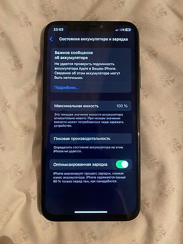 - Аккумулятор: в разделе «Состояние аккумулятора» отображается максимальная емкость 100%; имеется уведомление о невозможности проверить подлинность аккумулятора
