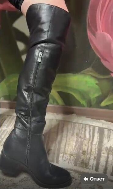 Женские высокие сапоги из натуральной кожи. Состояние отличное, 10 из 10. Носила два раза, очень удобные в носке. Покупала за 10000 сом. - Цвет: тёплый беж/тауп - Зимние, можно носить также холодн...