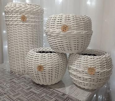 Кашпо-плетёнки белого цвета - Материал: плотное плетение (имитация