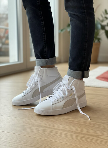 Кеды Puma, высокие (mid/high), белые.Зимние