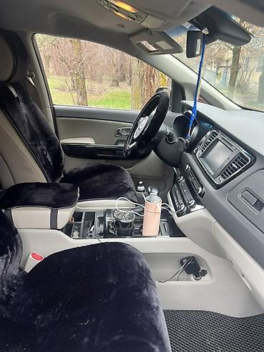 - Дополнительно: фирменные накладки/вставки Carnival в салоне, ворсовые чехлы на руль и сиденья, 3‑рядная компоновка (на фото видны передний ряд и тоннель).