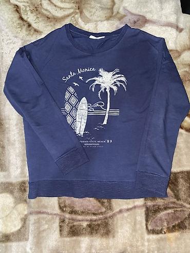 2) Лонгслив/свитшот темно‑синего цвета с принтом Santa Monica: пальма, серфы и волны. Мягкая хлопковая трикотажная ткань, круглый вырез, эластичные манжеты и нижняя планка в рубчик.
