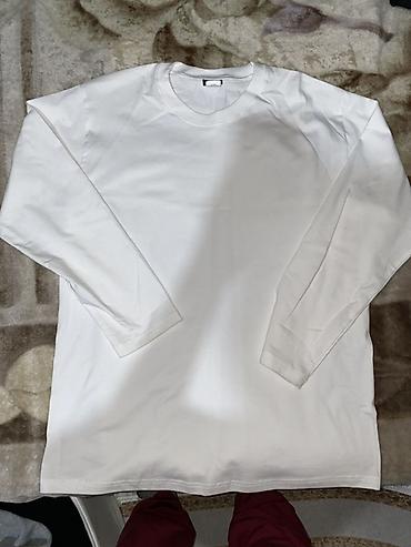 3) Базовый лонгслив белого цвета. Прямой силуэт, круглая горловина, длинные рукава, гладкий трикотаж средней плотности.