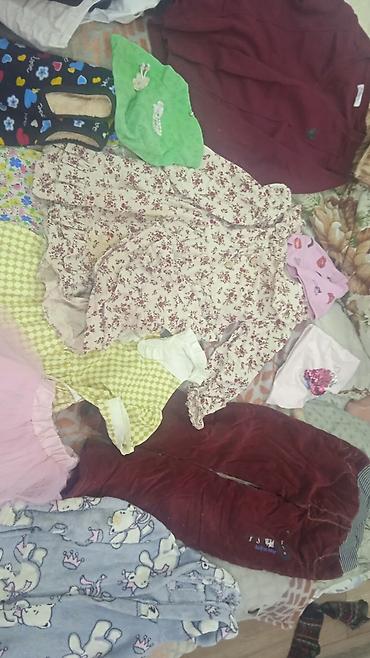 Детский комплект одежды для девочки 4 года . Цена символично: все платья за 350сом ;джинсы с кофтой 250сом ; безрукавка со спортивными за 100сом там пятна есть ;остальные бесплатно .