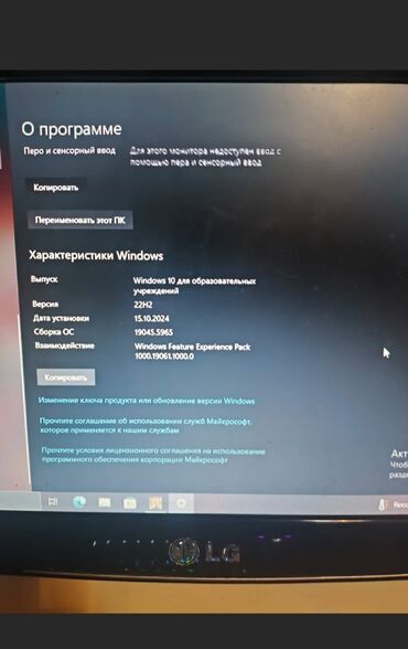 - ОС: Windows 10 для образовательных учреждений, версия 22H2, сборка 19045.5965 (дата установки 15.10.2024).