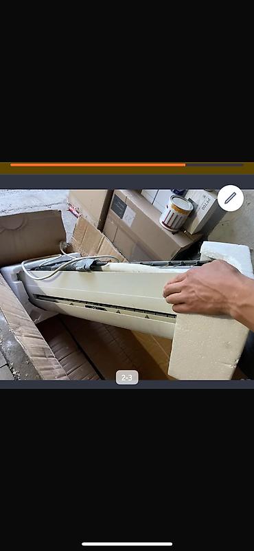 - Комплектация по фото: наружный блок в стандартном металлическом корпусе с защитной решеткой, настенный внутренний блок с кабелем/трассой в упаковочном пенопласте.